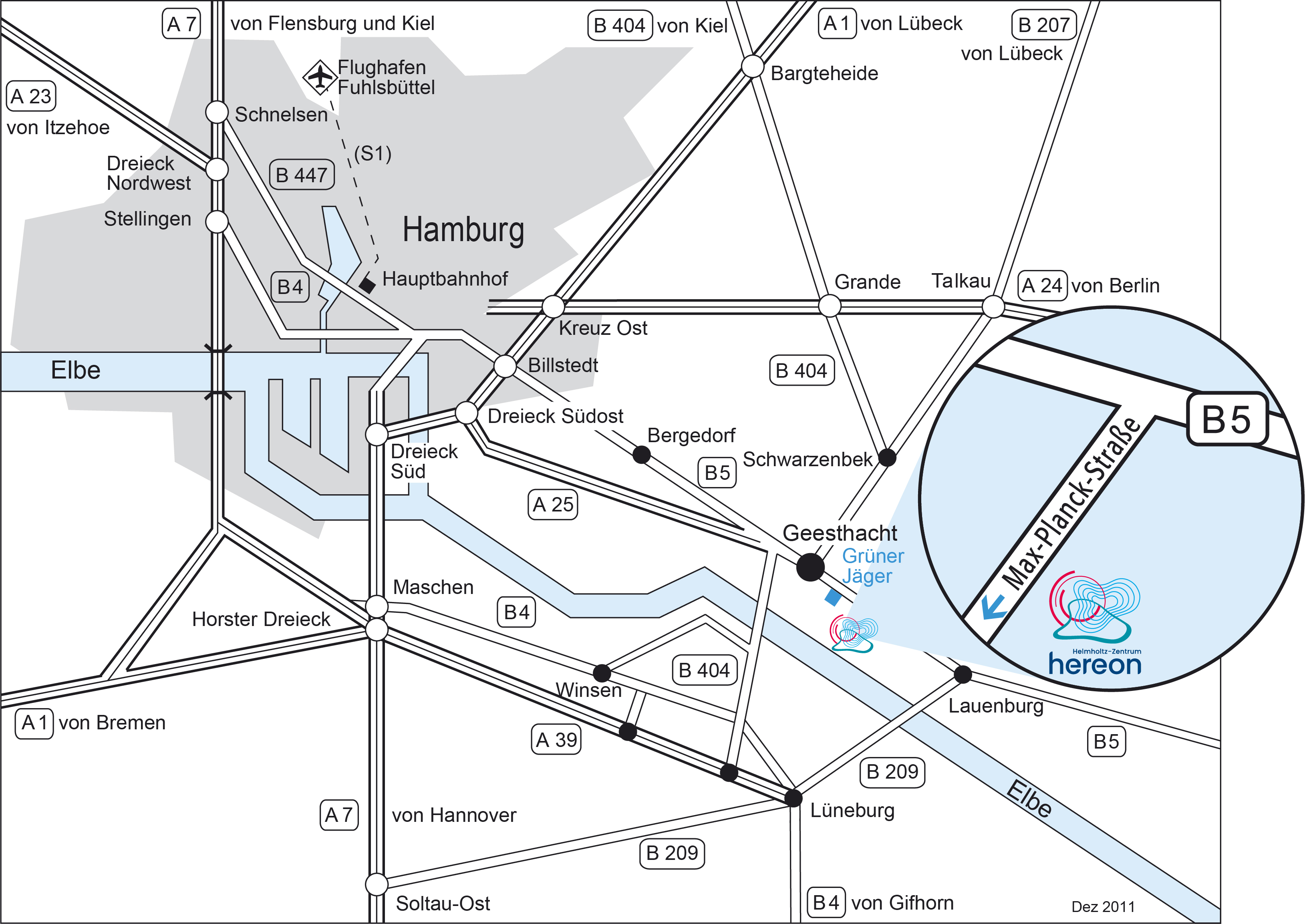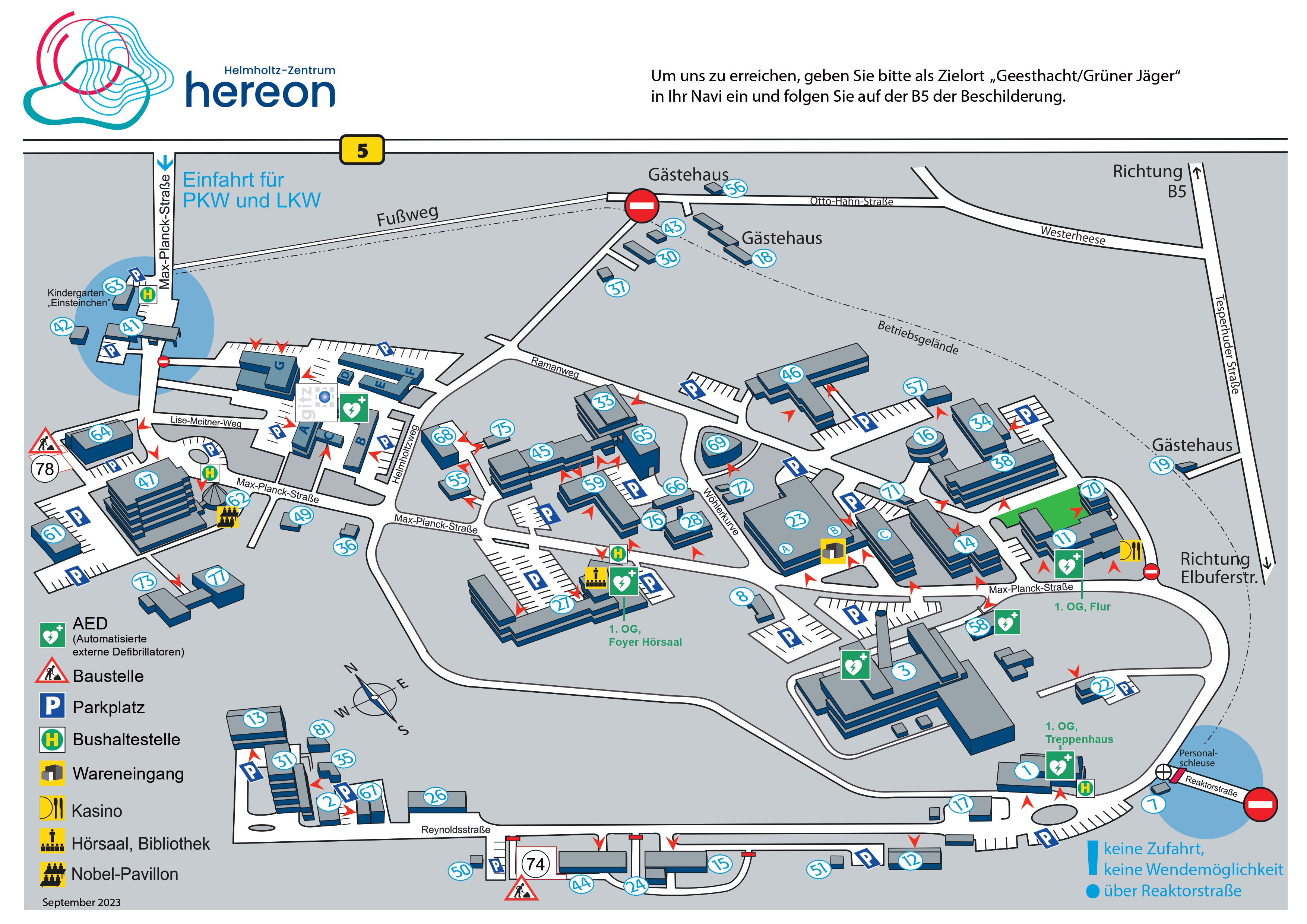 Bitte informieren Sie sich auch unter folgendem Link über Verkehrsverbindungen zum Helmholtz-Zentrum Hereon.