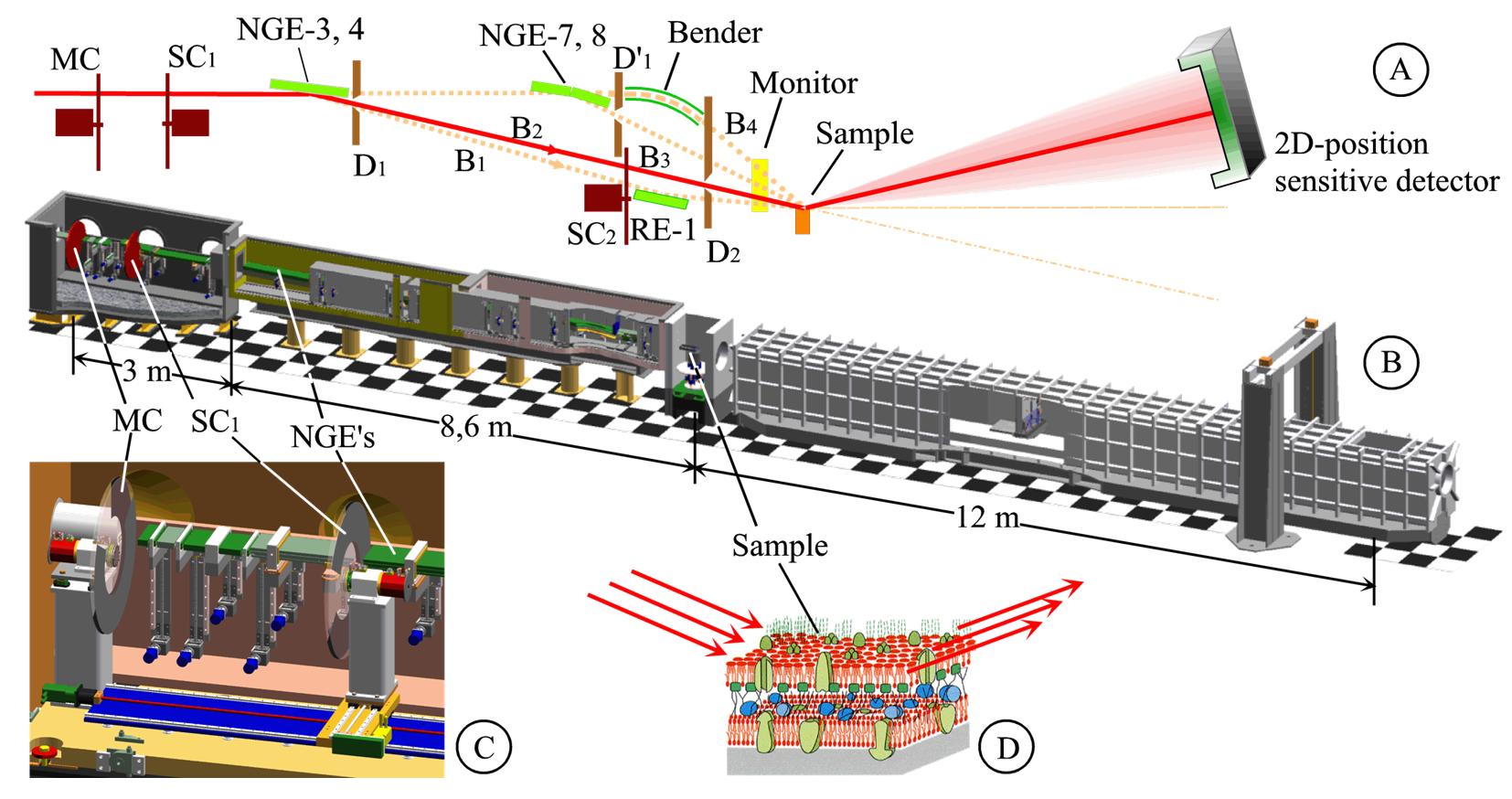 The instrument is designed as a ToF reflectometer (Fig. 1) in order to cover a huge range of momentum transfer with only a few instrumental settings (air-liquid interface).