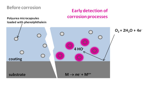 The project aims to develop an innovative approach to impart sensing functionality and detect substrate degradation. The degradation processes targeted will be corrosion of metallic substrates and mechanical damage by impact on fibre reinforced plastics and composites (FRP), used as structural components in the vehicle industry worldwide. The innovative sensing materials are based on controlled release of active species, encapsulated in polymeric and inorganic capsules with sizes ranging from several micrometres down to the nanometre range.