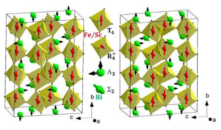 Two possible antipolar subgroups for the asprepared BiFe0.5Sc0.5O3 sample with the Pnma symmetry