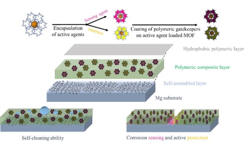 This project aims to develop durable, multifunctional multilayer composite (MMC) coatings to provide long-term corrosion protection to Mg-based materials. Durability and long-term protection will be achieved by using eco-friendly materials and considering interfacial adhesion strength between substrate/composite within the multilayers and their surrounding environments. MMC coatings will be prepared to protect Mg-based materials against corrosion and give a visual response when the coating is damaged to achieve this scientific goal. MMC coating will consist of a self-assembled organic layer, a polymeric composite containing corrosion inhibitor and sensing agents loaded metal-organic frameworks (MOF) using a stimuli-responsive polymeric gatekeeper in a single layer and a top self-cleaning hydrophobic polymeric layer. They will provide adequate long-term corrosion protection of Mg-based structures by the synergistic effect of self-cleaning, passive barrier layers and on-demand release of active corrosion inhibitors from loaded MOF.