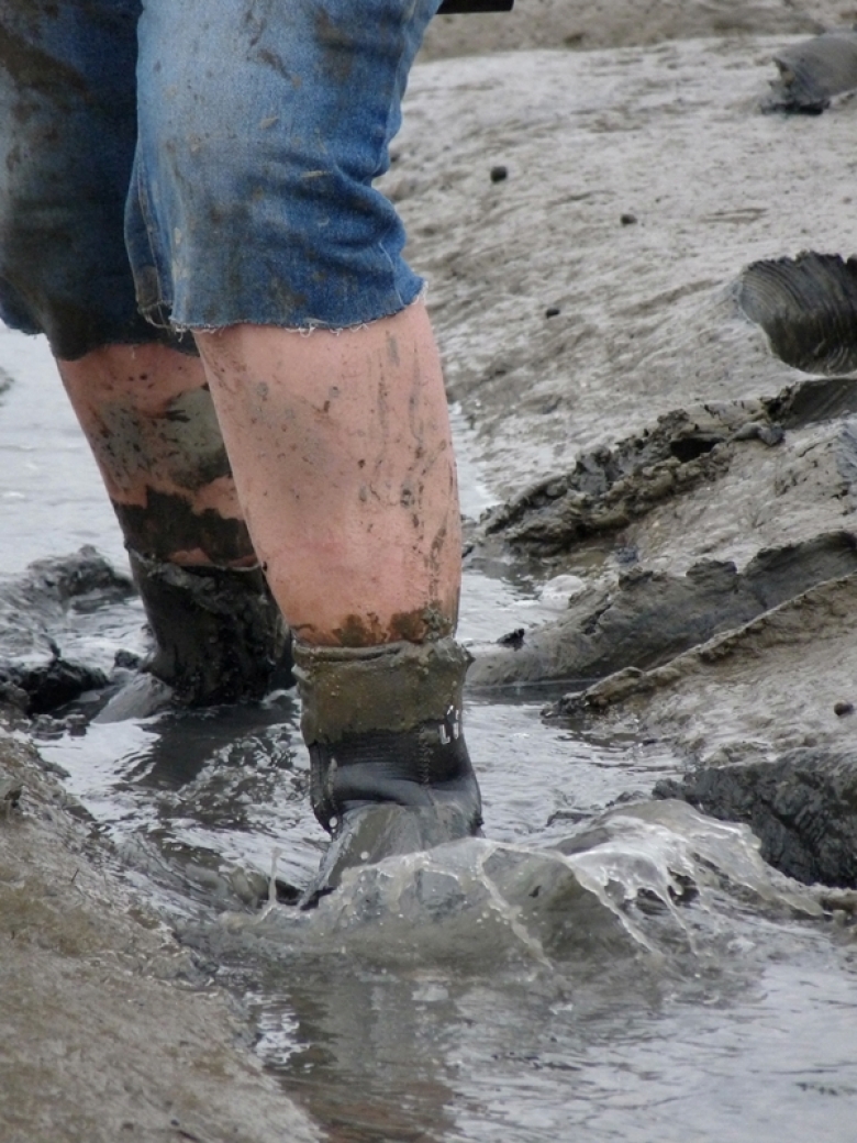 Im Schlickwatt des Ästuars der Elbe in der Nähe der Ostemündung (Probe 15) am 15.06.2014 (Foto: Ina Frings/Hereon)