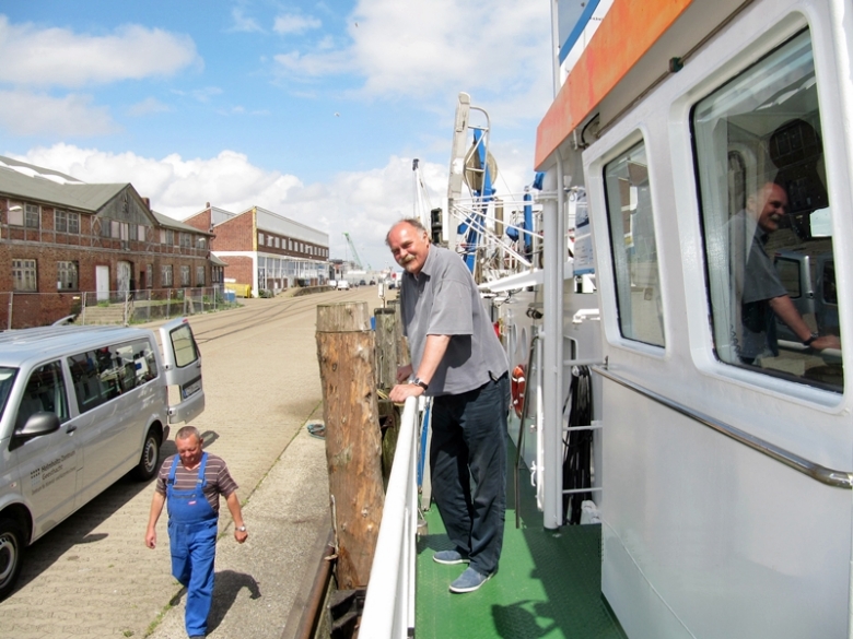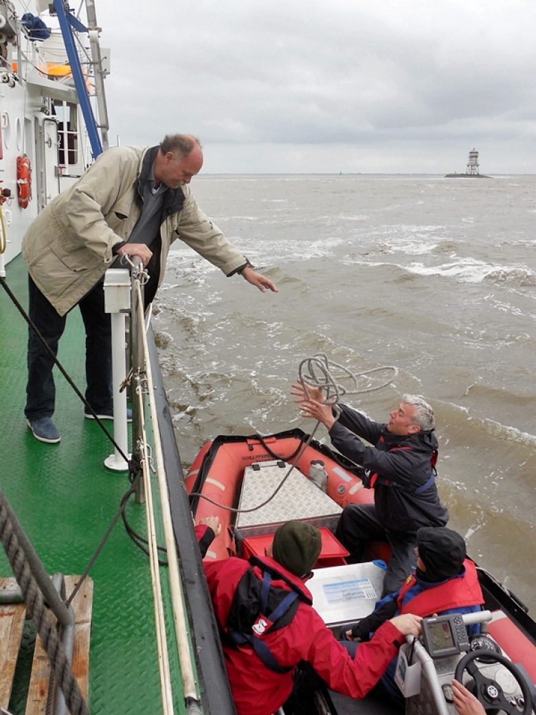 Wasserprobennahme im vorgelagerten Seegebiet vor Norderney, genommen vom Forschungsschiff "Burchana" (Probe 26) am 25.06.2014 (Foto: Ulrike Kleeberg/Hereon)
